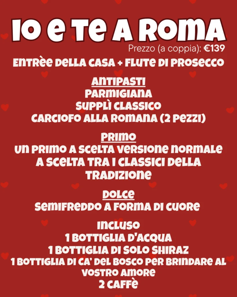 Palloncini a forma di cuore, petali rossi e un menu’ dedicato a un prezzo imbattibile: