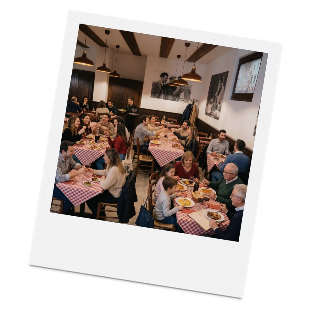 Semo le tovaglie a quadri, i brindisi a voce alta e le risate de chi s’incontra pe’ sta bene.